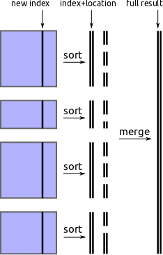 indexes = [block['new-column-index'] for block in blocks]Perform out-of-core sort on that column
