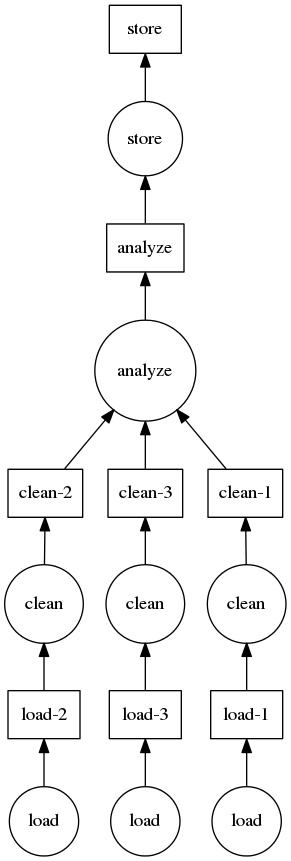 The explicit function calls here don’t perform work directly; instead they build up a dask graph which we can then execute in parallel with our choice of scheduler.