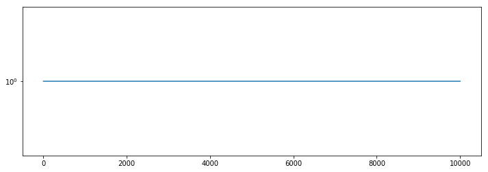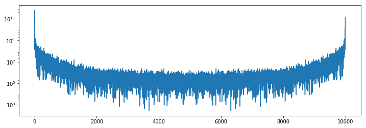 plt.semilogy(1 + power[:, 0, 0].compute())