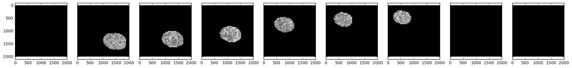 fig, axarr = plt.subplots(1, 9, sharex=True, sharey=True, figsize=(24, 2.5))