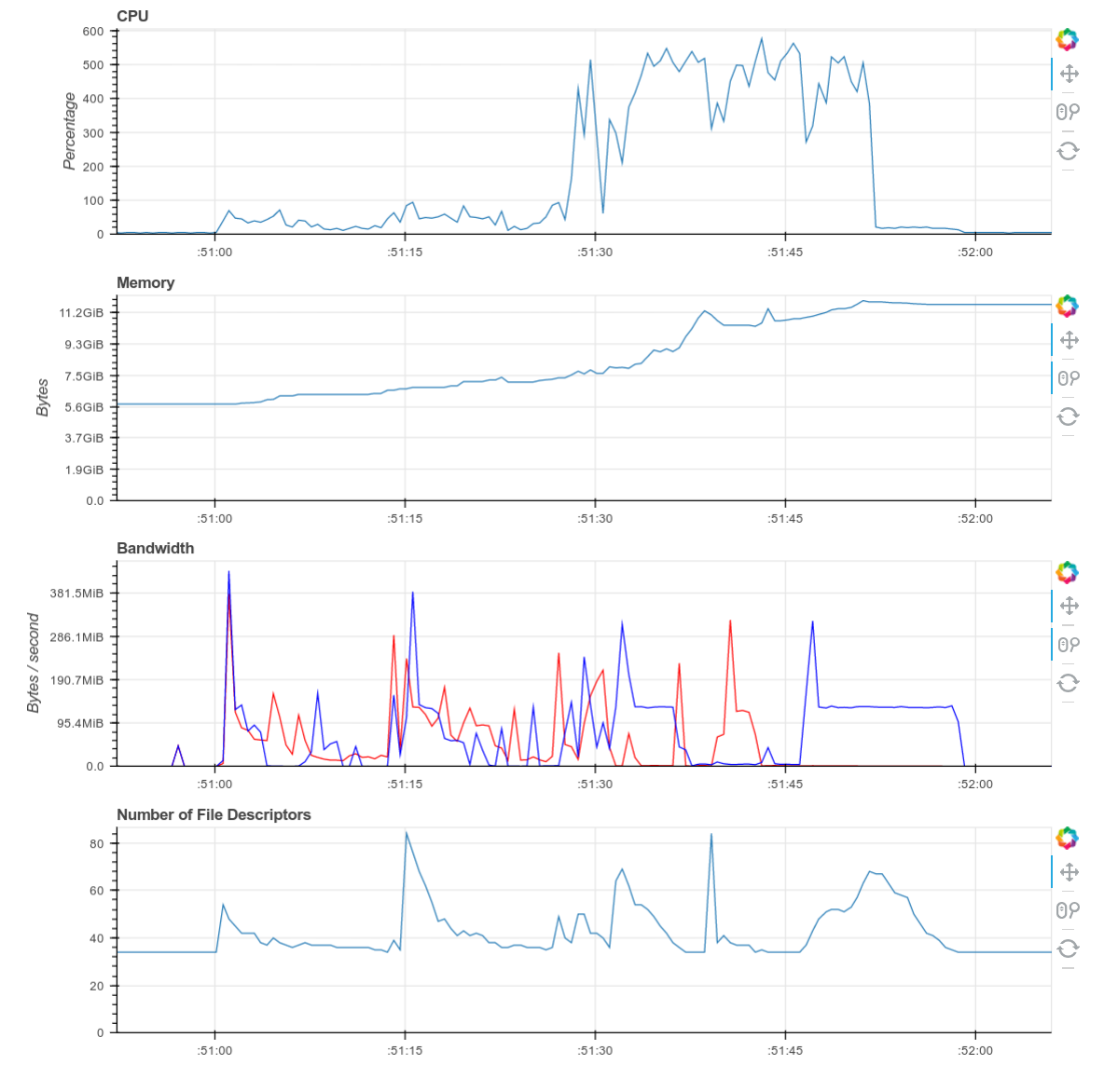 Screenshots of the diagnostic dashboard of a single worker during this computation.