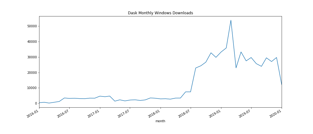 However even this is strange. The structure doesn’t match my personal experience. Why the big change in adoption in 2018? What is the big spike in 2019? Anecdotally maintainers did not notice a significant jump in users there. Instead, we’ve experienced smooth continuous growth of adoption over time (this is what most long-term software growth looks like). It’s also odd that there hasn’t been continued growth since 2018. Anecdotally Dask seems to have grown somewhat constantly over the last few years. Phase transitions like these don’t match observed reality (at least in so far as I personally have observed it).